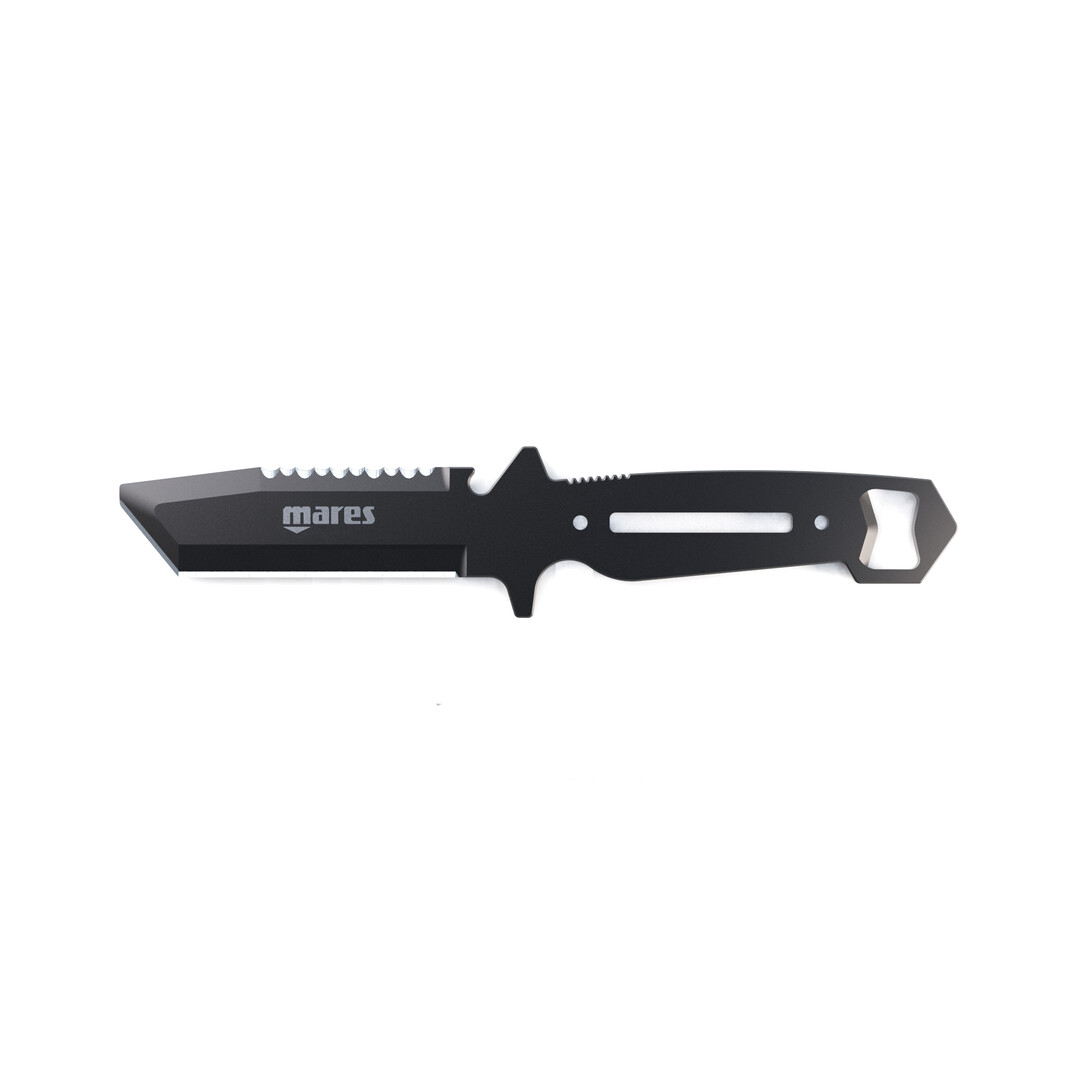Med 230 mm total längd och en 4 mm tjockt blad, kombinerar den rak egg, serraterad egg, linavskärare, skruvmejsel och flasköppnare – ett perfekt verktyg för alla undervattensbehov.