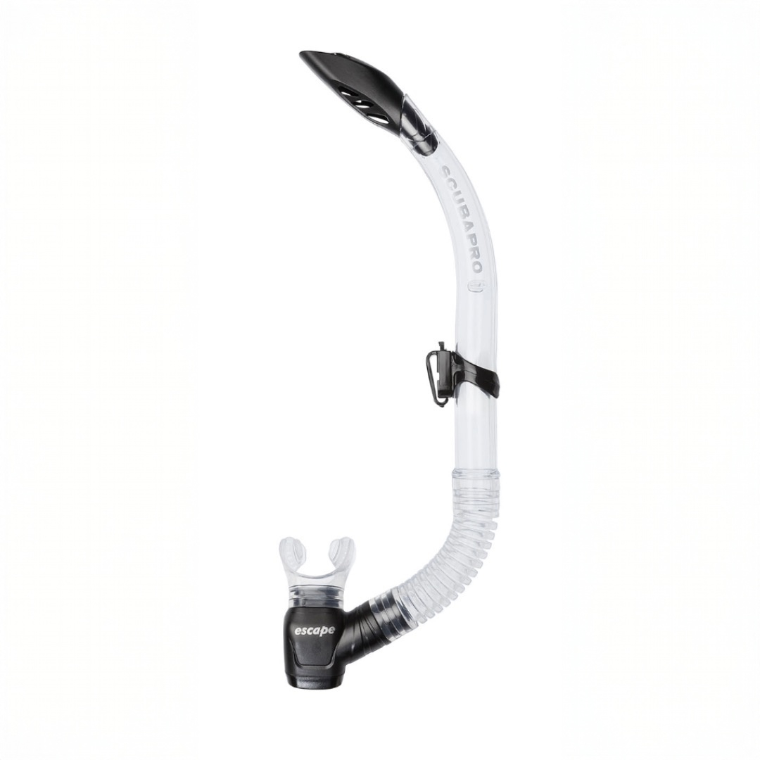 Scubapro Escape Snorkel är en pålitlig och bekväm snorkel med maximalt luftflöde och effektiv vattentömning. Tack vare den semi-torra toppen med vågbrytare minimeras vattenintrång, och en självdräneringsventil vid den lägsta punkten gör att vattnet snabbt rinner ut.