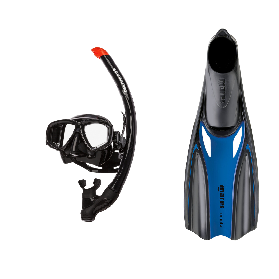 Snorkelset Basic – Full Set med mask, snorkel & fenor från Scubapro & Mares | För nybörjare & erfarna
